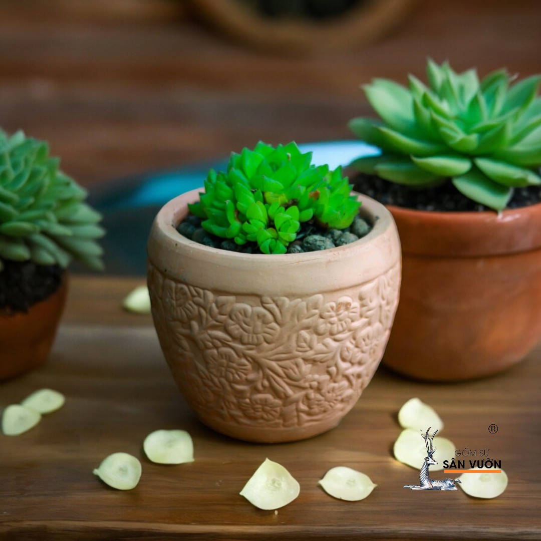 ✨Chậu Gốm Đất Nung Chum Hoa Văn - Chậu Trồng Sen Đá