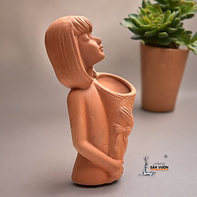 Tên sản phẩm : Chậu Gốm Đất Nung Hình Cô Gái Ôm Hoa