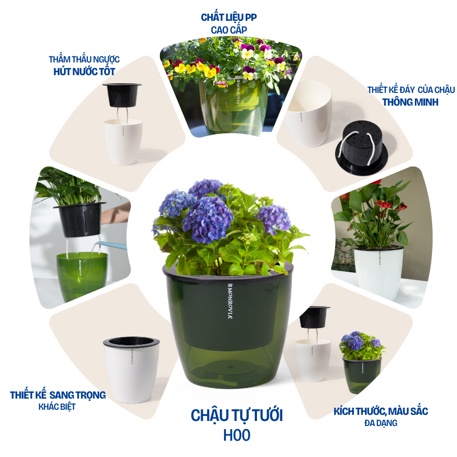✨Chậu trồng cây tự tưới MONROVIA H0, chất liệu PP cao cấp, trồng hoa, cây cảnh, trang trí nhà cửa