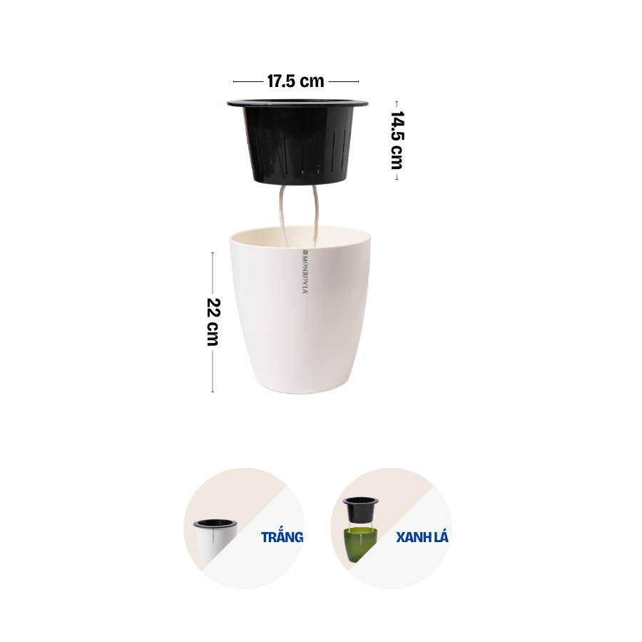 DOCNEEM XIN GIỚI THIỆU ĐẾN BẠN MÃ SẢN PHẨM - CHẬU TRỒNG CÂY TỰ TƯỚI ĐỂ BÀN THÔNG MINH KIỂU DÁNG TRÒN MONROVIA I0 _ Chất liệu: PP cao cấp _ Cấu tạo: Chậu bao