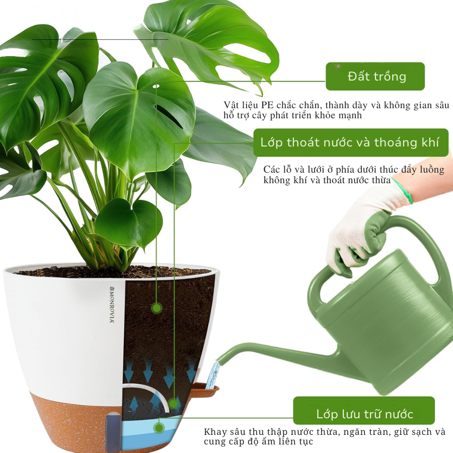 DOCNEEM XIN GIỚI THIỆU ĐẾN BẠN MÃ SẢN PHẨM - CHẬU TRỒNG CÂY TỰ TƯỚI THÔNG MINH MONROVIA H0 _ Chất liệu: PP cao cấp _ Cấu tạo: Chậu bao gồm hai lớp chậu *