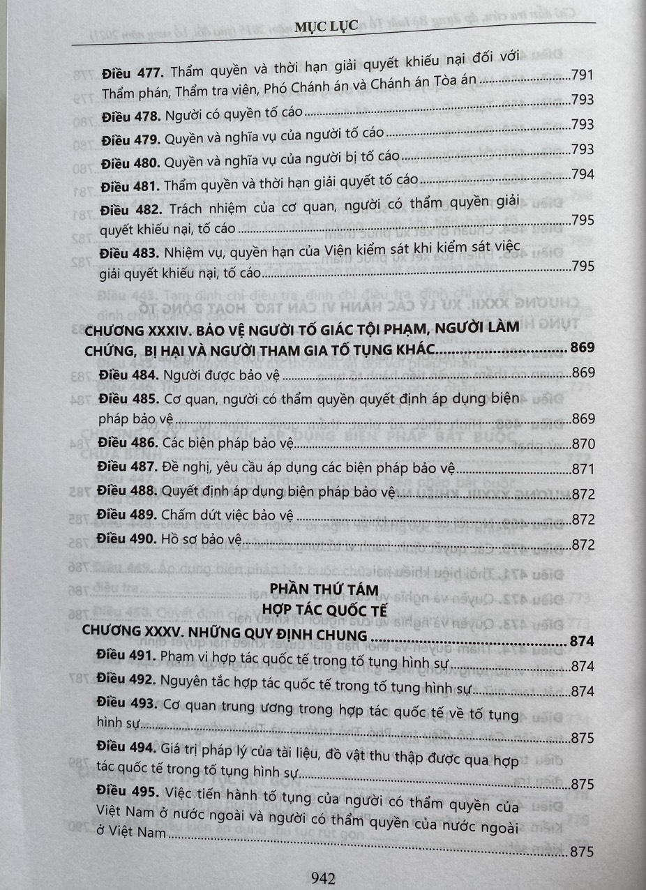 Cuốn sách gồm 9 phần, 510 điều, quy định trình tự, thủ tục tiếp nhận, giải quyết nguồn tin về tội phạm, khởi tố, điều tra, truy tố, xét xử và một số thủ tục