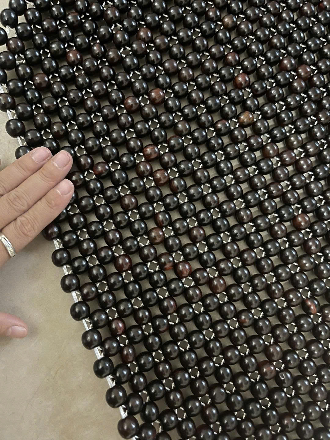 Chiếu Hạt Gỗ Cẩm Cao Cấp Chất liệu: 100% hạt gỗ Cẩm Lai tự nhiên. - Kích thước hạt 1,2cm. - Kích thước chiếu 1,2mx1,9m. - Dây đan chiếu là loại dây dù cao cấp được