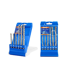 Bộ 6 Mũi khoan bê tông đuôi gài Bộ 6 Mũi khoan bê tông đuôi gài gồm các size: 6X110mm,6X110mm,8X110mm,8X160mm,10X160mm,12X160mm. Đóng gói bằng hộp nhựa