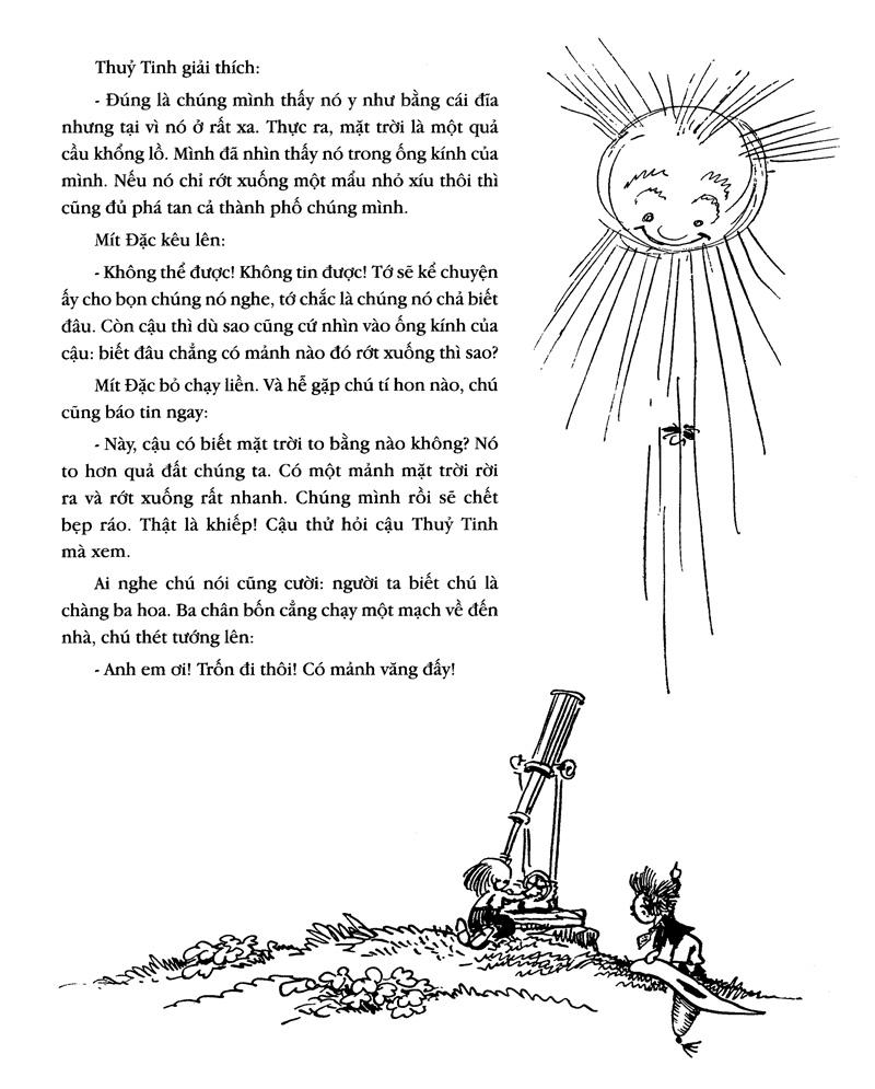 Theo cùng trang sách, các bạn sẽ có những chuyến phiêu lưu rất thú vị với các chú tí hon đi trên chín tầng mây, đến thành phố Xanh vô cùng tươi đẹp toàn… con gái, và thành phố Diều với những phát minh khoa học tiên tiến…