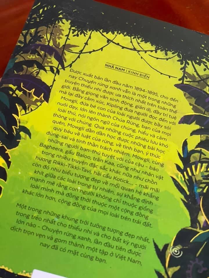 Về ấn bản này, tôi không lầm thì đây là lần đầu hai tập “Chuyện rừng xanh” được gom thành tập hoàn chỉnh. Quan trọng hơn nó là bản dịch mới hoàn toàn của Phạm Văn - người dịch tài hoa.