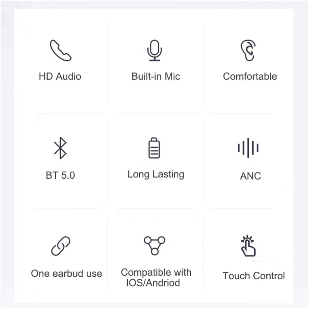 Màu sắc: đen, trắng Tên sản phẩm: D01-ANC Chip: Lanxun 5396A Phiên bản Bluetooth: 5.0 Kết nối hệ thống hỗ trợ Bluetooth: Android, IOS, Windows, chẳng hạn như máy tính xách tay có Bluetooth, máy
