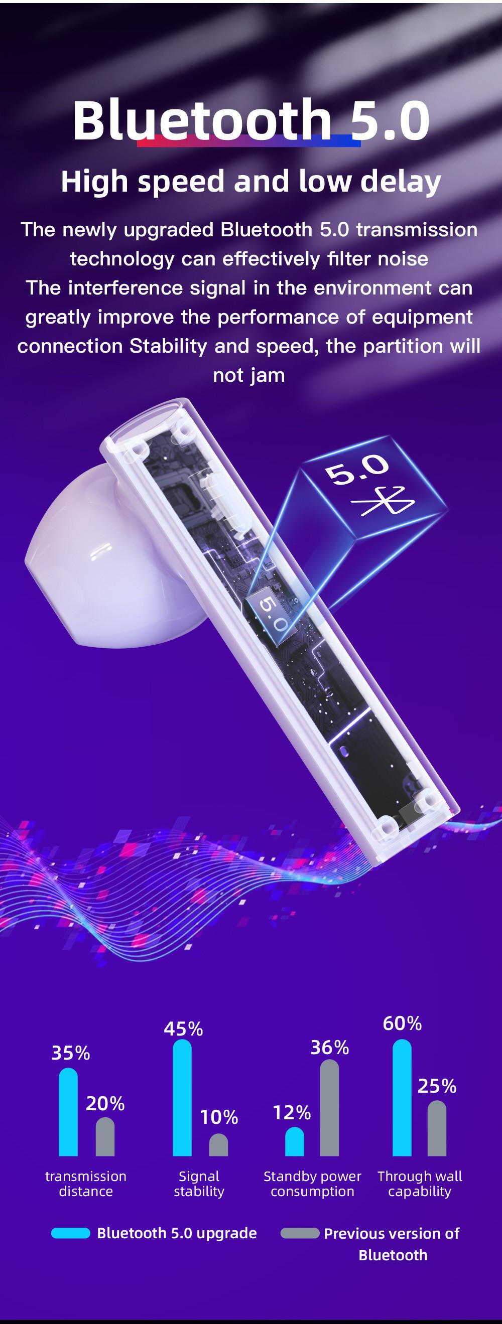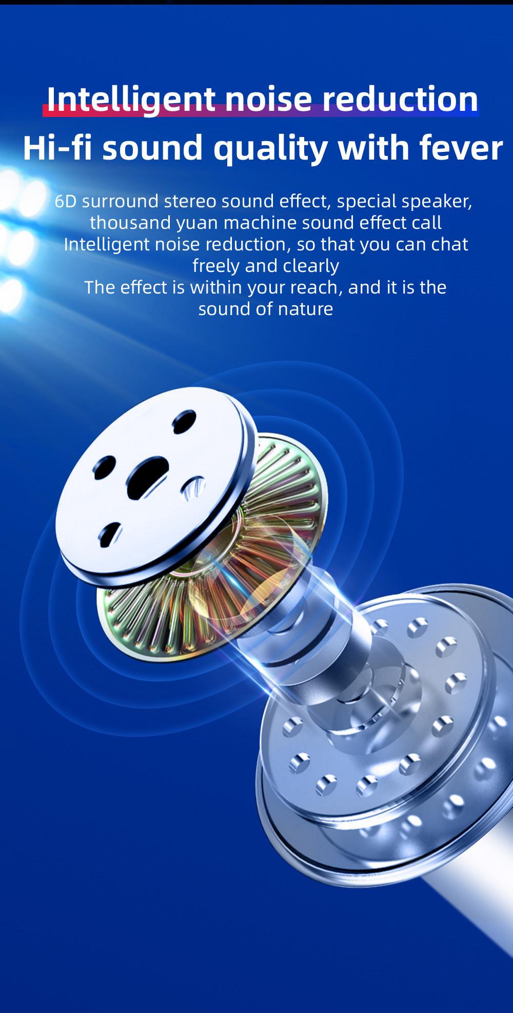 Features: Adopt DSP anti-interference chip and BT5.0 chip, fast and stable transmission, low power consumption. High-quality eight-core 13mm speaker unit, good sound quality, comfortable audio experience. CVC intelligent noise reduction technology can automatically reduct environmental