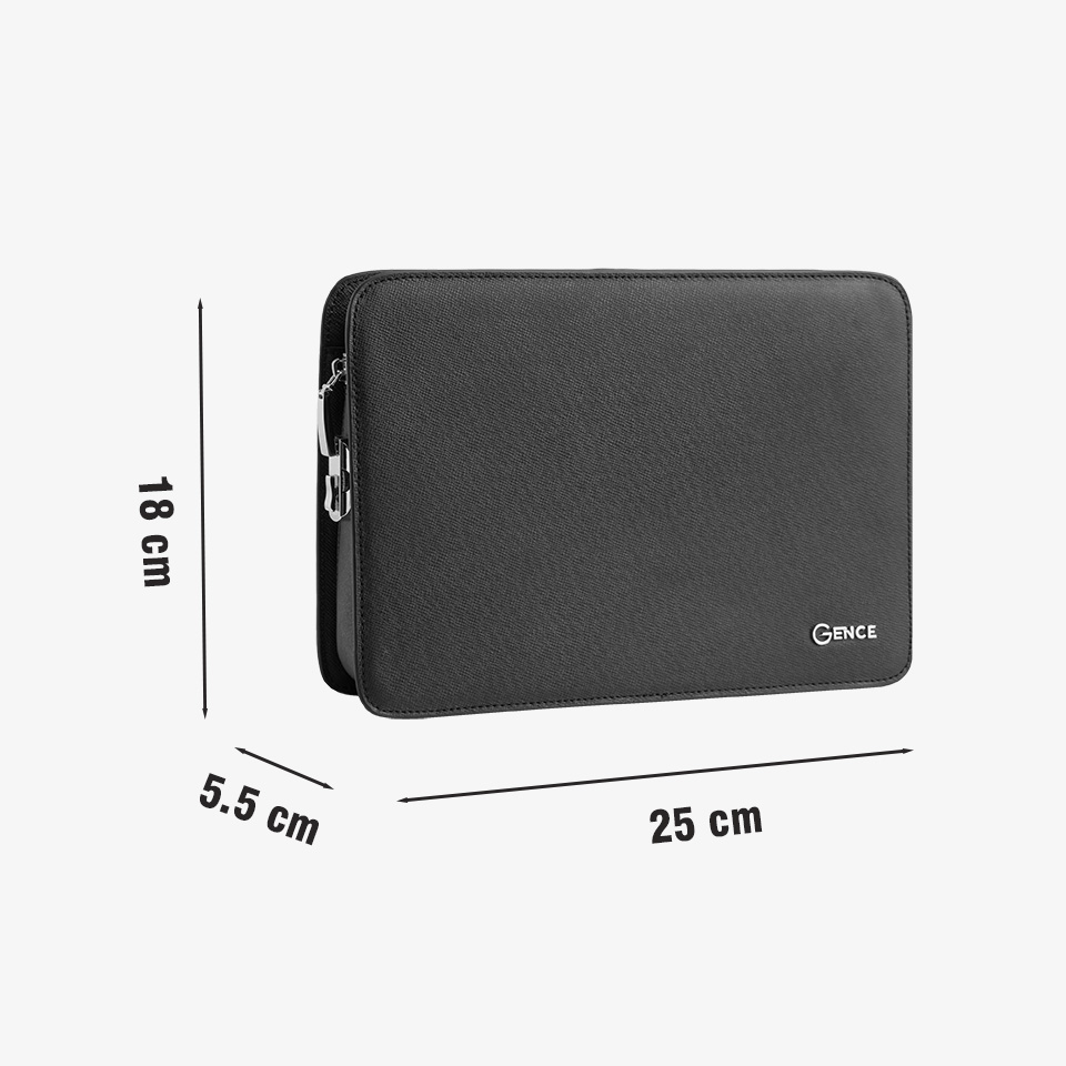 - Xuất sứ: GENCE Việt Nam - Mã SP: RB03 - Sử dụng: Clutch cầm tay, đeo tay cho nam - Kích thước: 21cm (Dài) x 13cm (Cao) x 5cm(rộng) Thiết kế với form dáng cầm tay có khóa