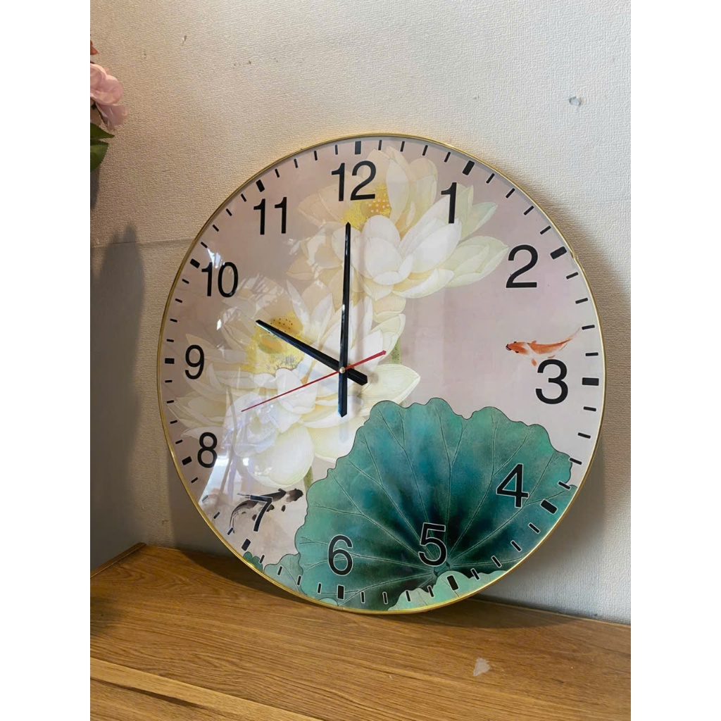 Mua tại TiktokTranh đồng hồ treo tường tráng gương hoa sen trắng