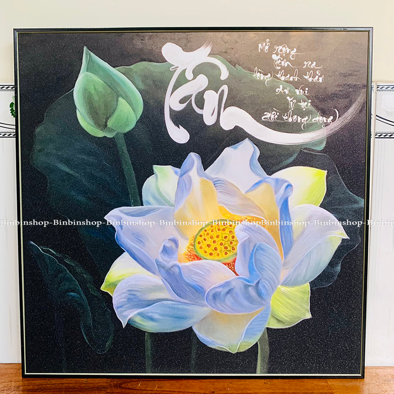 Mua tại TiktokTranh treo tường chữ tâm và hoa sen trắng