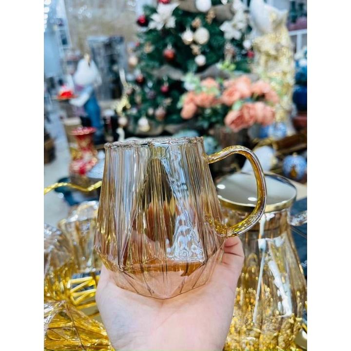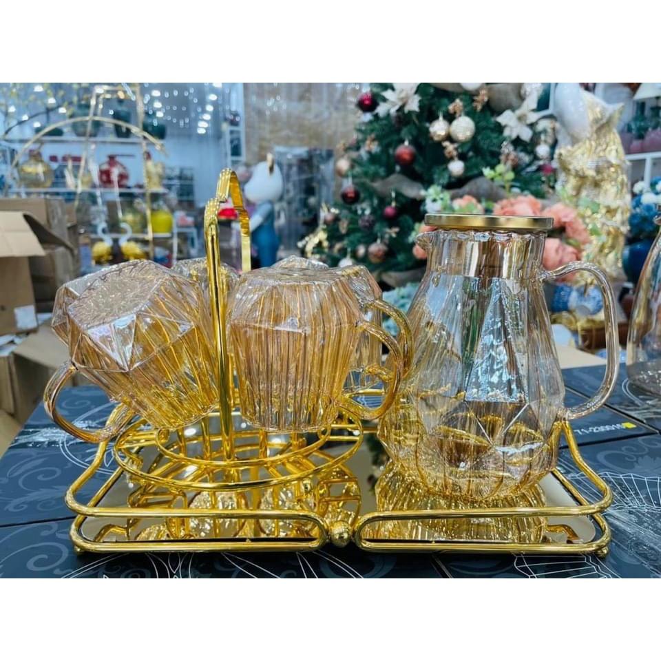 Bộ bình 6 cốc thủy tinh chịu nhiệt mạ vàng cao cấp