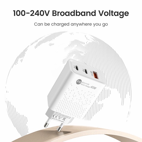 Lưu ý: Xin chào, "40W" Trong bộ sạc có nghĩa là tổng số PD40w (không bao gồm cổng QC3.0), Như trong hình ảnh về điện áp và kiểm tra dòng điện. 1 cổng PD có thể đạt tối đa 20W MAX 3 cổng có thể đạt tối đa 60W