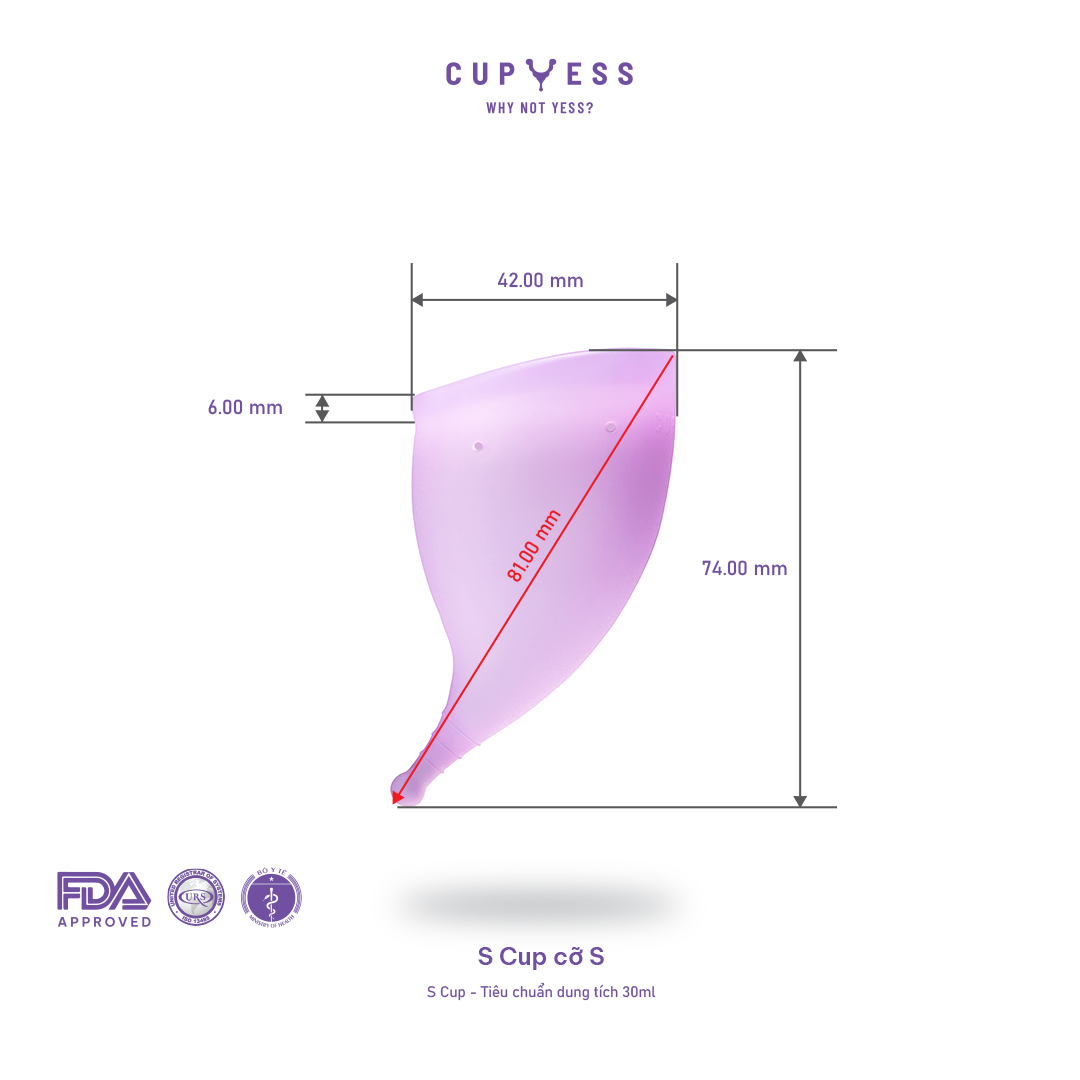 ✨Cốc nguyệt san tiêu chuẩn S Cup cỡ S (30ml) Cup Yess chính hãng, an toàn, phù hợp mọi cơ địa