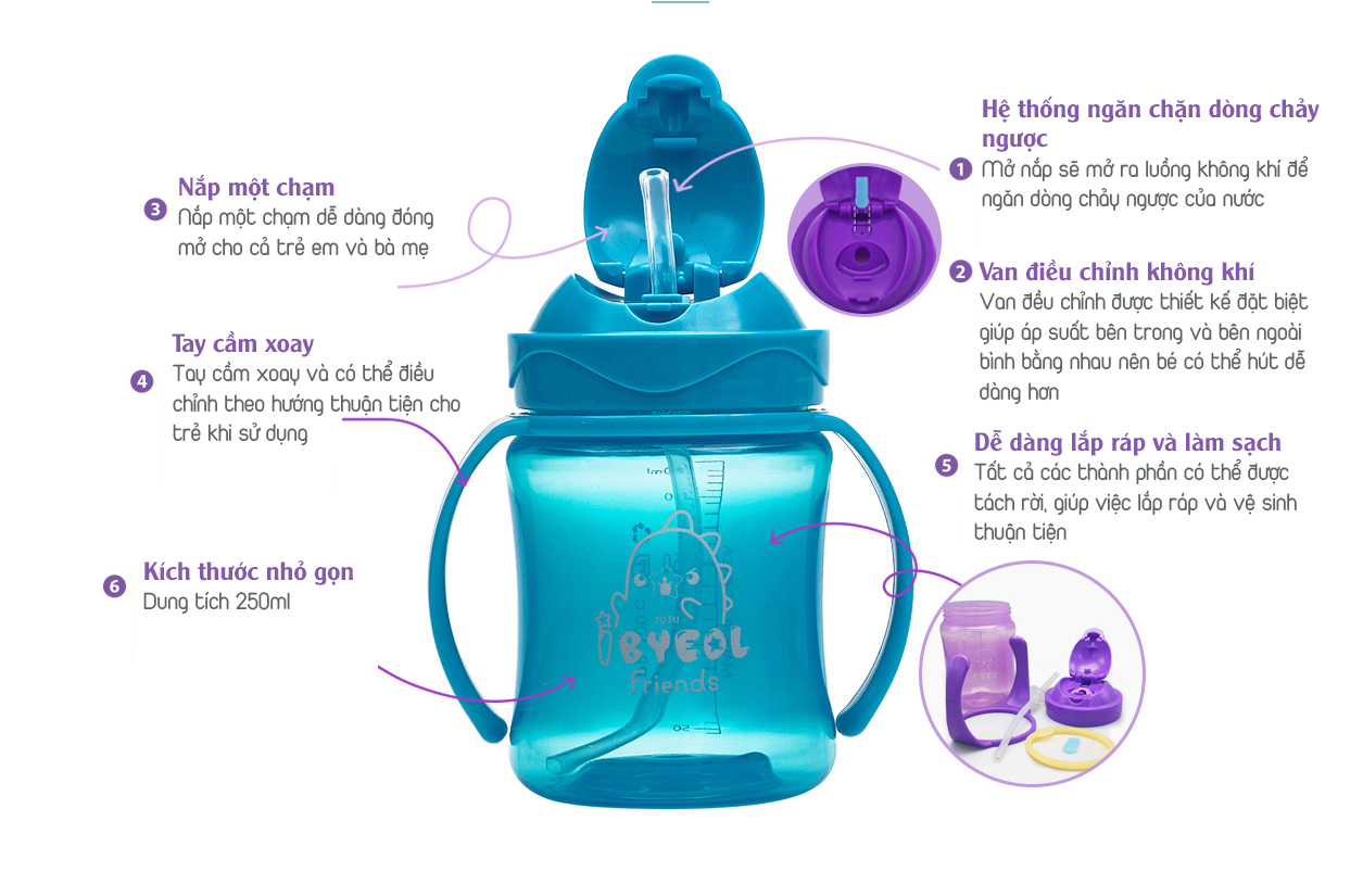 Đặc điểm sản phẩm - Nhựa PP an toàn, không chứa BPA, chịu nhiệt 120 độ C - Thiết kế phù hợp, vừa khuôn miệng - Tay cầm an toàn, chắc chắn - Quy cách: