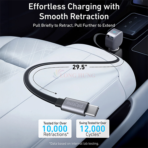 - Tích hợp sẵn cáp USB-C rút gọn tiện dụng, không lo rối dây khi dùng