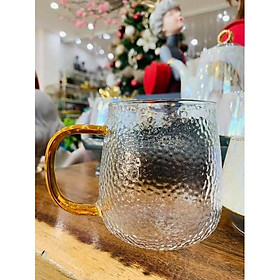 ✨Cốc thủy tinh chịu nhiệt vân sần quai vàng