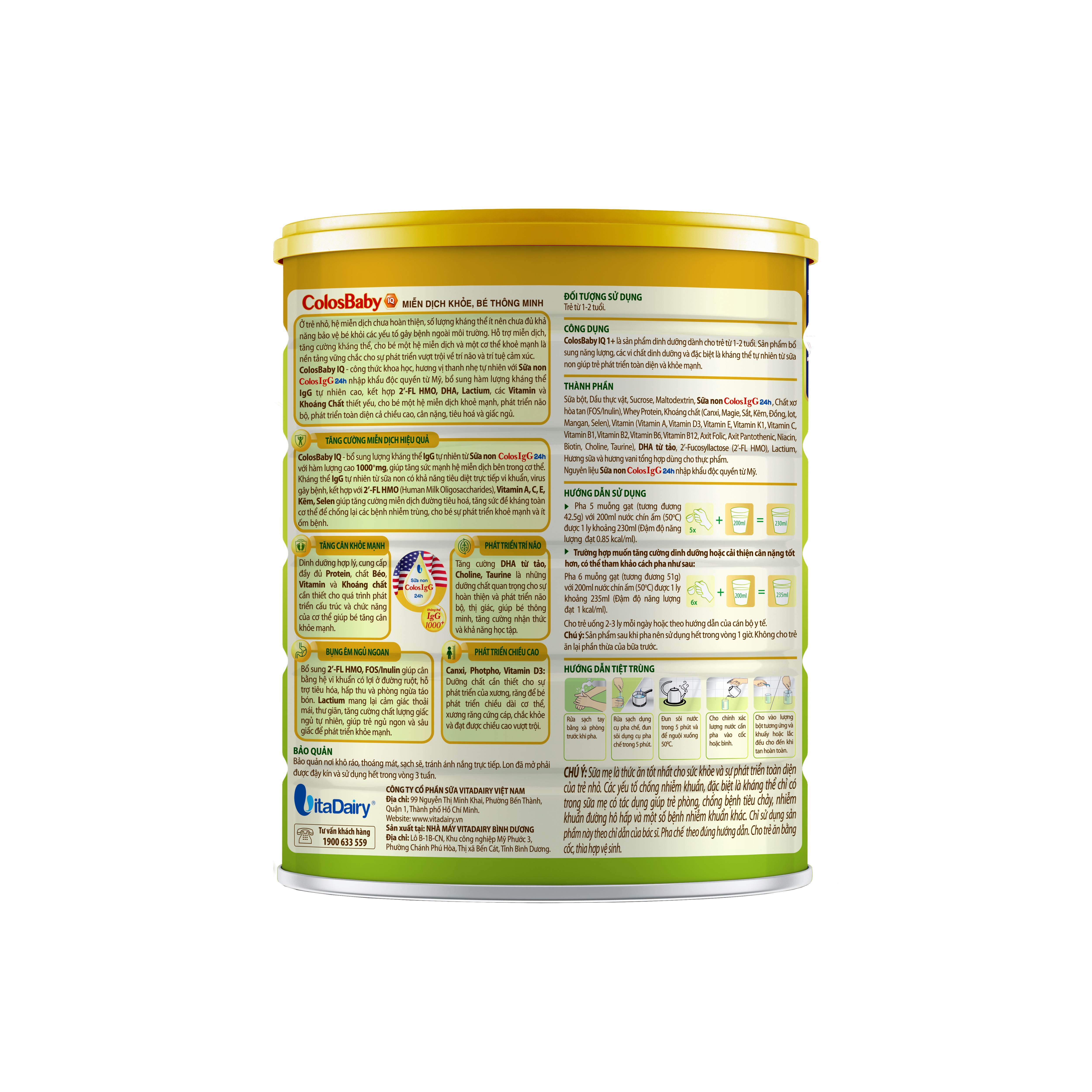 ColosBaby IQ - công thức khoa học, hương vị thanh nhẹ tự nhiên với sữa non ColosIgG 24h nhập khẩu độc quyền từ Mỹ, bổ sung hàm lượng kháng thể IgG tự nhiên cao, kết