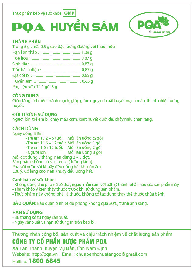✨Cốm Huyền Sâm PQA Giúp Tăng Tính Bền Thành Mạch, Thanh Nhiệt Lương Huyết Dùng Cho Đối Tượng Chảy Máu Cam Hộp 12 Gói