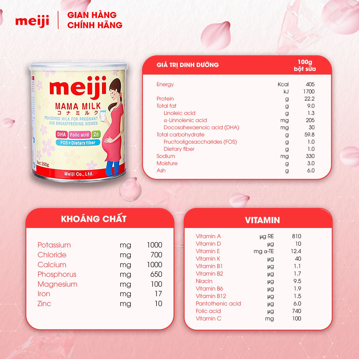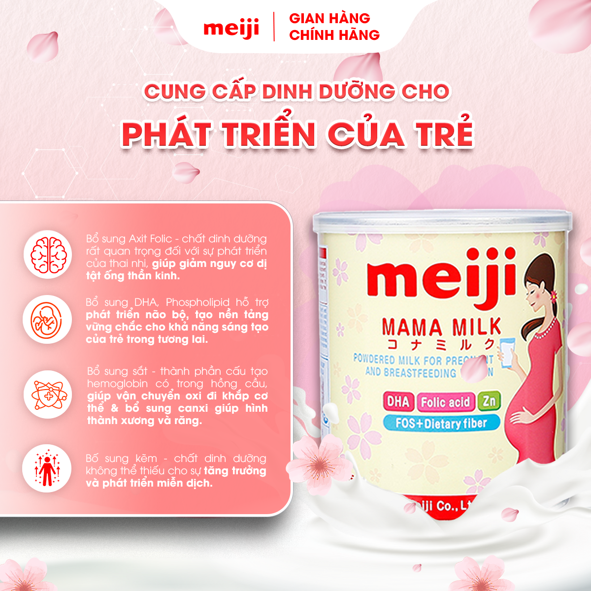 Mua tại TiktokCombo Thực Phẩm Bổ Sung dành cho bà mẹ mang thai và cho con bú Meiji Mama Milk (350g) Và Sản Phẩm Dinh Dưỡng Công Thức Meiji Growing Up Formula EZcube Cho Trẻ Từ 1-3 Tuổi (560g) THÔNG TIN SẢN PHẨM