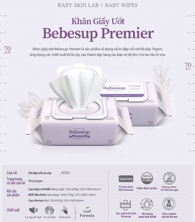 BEBESUP là loại khăn ướt cho cho trẻ em , được bình chọn là sản phẩm có lượng tiêu thụ cao trong tất cả các sản phẩm khăn ướt của Bebesup. Sản phẩm được làm bằng vải dập nổi độ dày 50gsm, chứa chiết xuất từ những thực phẩm xanh, để giữ cho làn da của bé sạch sẽ và không gây kích ứng.