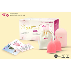 Hộp đựng sản phẩm bao gồm: 2 cốc nguyệt san, túi vải, cốc tiệt trùng, HDSD