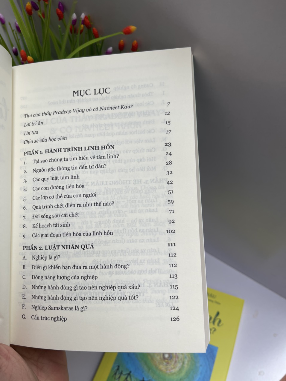 Cuốn sách được chia làm bốn phần. Phần một, viết về hành trình của linh hồn tại phần này bạn sẽ hiểu được linh hồn của chúng ta là vĩnh cửu, các bước tiến hóa của linh hồn qua các kiếp là như thế nào? Quá trình tạm biệt cơ thể vật lý để bước đến một kế hoạch tái sinh mới sẽ ra sao. Phần hai, về luật nhân quả bạn sẽ hiểu được các dòng năng lượng của nghiệp, những hành động gì thì tạo nghiệp quả tốt và nghiệp quả xấu; các bài học liên quan đến nghiệp, những kế hoạch mà bạn đã định ra trước khi tái sinh có ý nghĩa như thế nào? Phần ba, hệ thống các luân xa của mỗi người với vai trò và sự ảnh hưởng của năng lượng của các luân xa này lên đời sống ra sao, và cách để mỗi người có thể tự cân bằng lại dòng năng lượng ở mỗi luân xa như thế nào. Phần cuối cùng, những hướng dẫn giúp bạn thiền định – khi thiền định sẽ giúp bạn sáng tỏ hơn những bài học mình cần phải học, những nghiệp quả mình cần phải trả, giúp bạn quay trở về bên trong của mình và kết nối với tâm thức cao hơn.