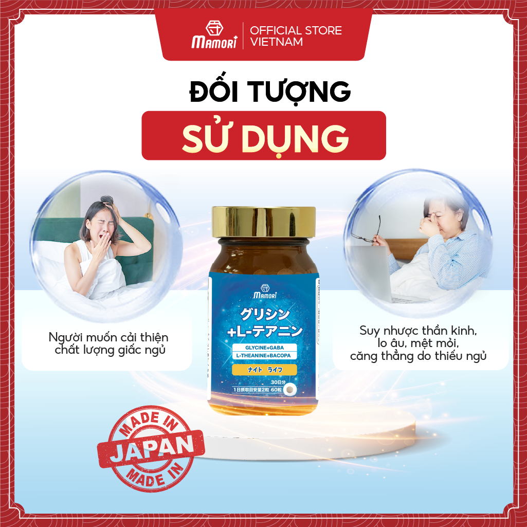 ✨Combo 2 Hộp Viên uống MAMORI Glycine L-Theanine giúp giảm căng thẳng - stress, Hỗ trợ ngủ ngon, ngủ sâu giấc (60 Viên)