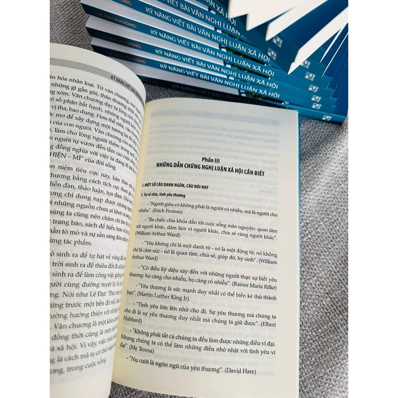 Mua tại TiktokKỹ năng viết bài văn nghị luận xã hội Kể từ năm 20222-2023, chúng ta đã chính thức áp dụng bộ sách giáo khoa mới vào chương trình dạy học các cấp. Việc tiếp cận với điều mới chưa bao giờ dễ dàng, đặc biệt cùng một lúc có 3 bộ sách: Kết nối tri thức với cuộc sống, Cánh Diều và Chân trời sáng tạo. Cuốn sách KỸ NĂNG VIẾT BÀI VĂN NGHỊ LUẬN XÃ HỘI sẽ định hướng cho thầy cô và các em kỹ năng triển khai bài văn nghị luận xã hội đúng và hay, đồng thời cung cấp các bài viết tham khảo, hệ thống các dẫn chứng vận dụng trong bài nghị luận xã hội. Cuốn sách bám sát đề minh họa môn Ngữ Văn của Bộ Giáo dục và Đào tạo công bố vào tháng 12 năm 2023, đáp ứng tiêu chí: cập nhật, chi tiết và sáng tạo. —————————- Cuốn sác bao gồm ba phần: