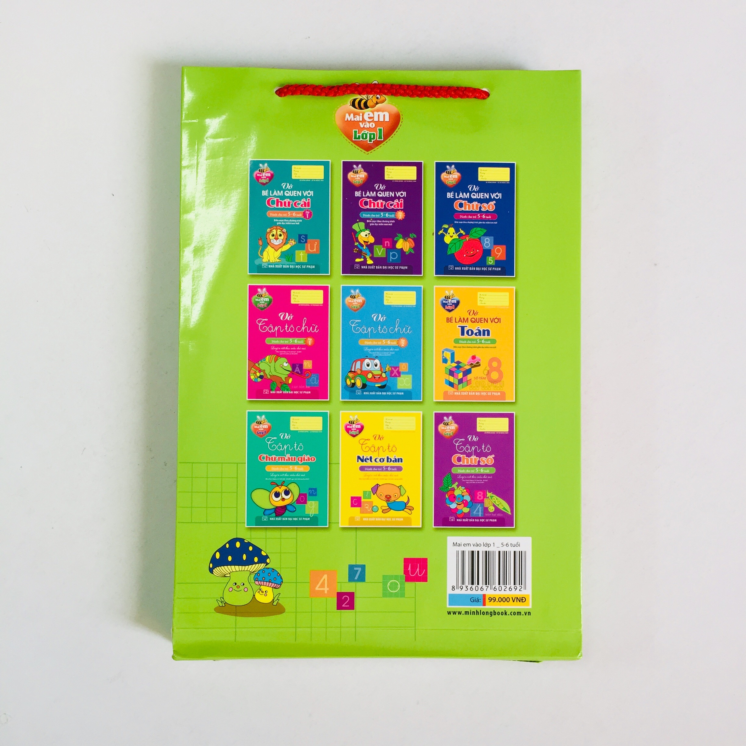 Túi bao gồm 9 cuốn, mỗi cuốn mang một chủ đề khác nhau hướng dẫn các em làm quen với các khái niệm toán học đơn giản và các phép tính trong phạm vi 10; đồng thời rèn luyện khả năng quan sát, phát triển tư duy thông qua các trò chơi thú vị. Các mẫu chữ trong bộ sách đều là mẫu chữ mới do Bộ Giáo dục và Đào tạo quy định, hiện đang được áp dụng trong các trường tiểu học trên toàn quốở tập tô cho bé