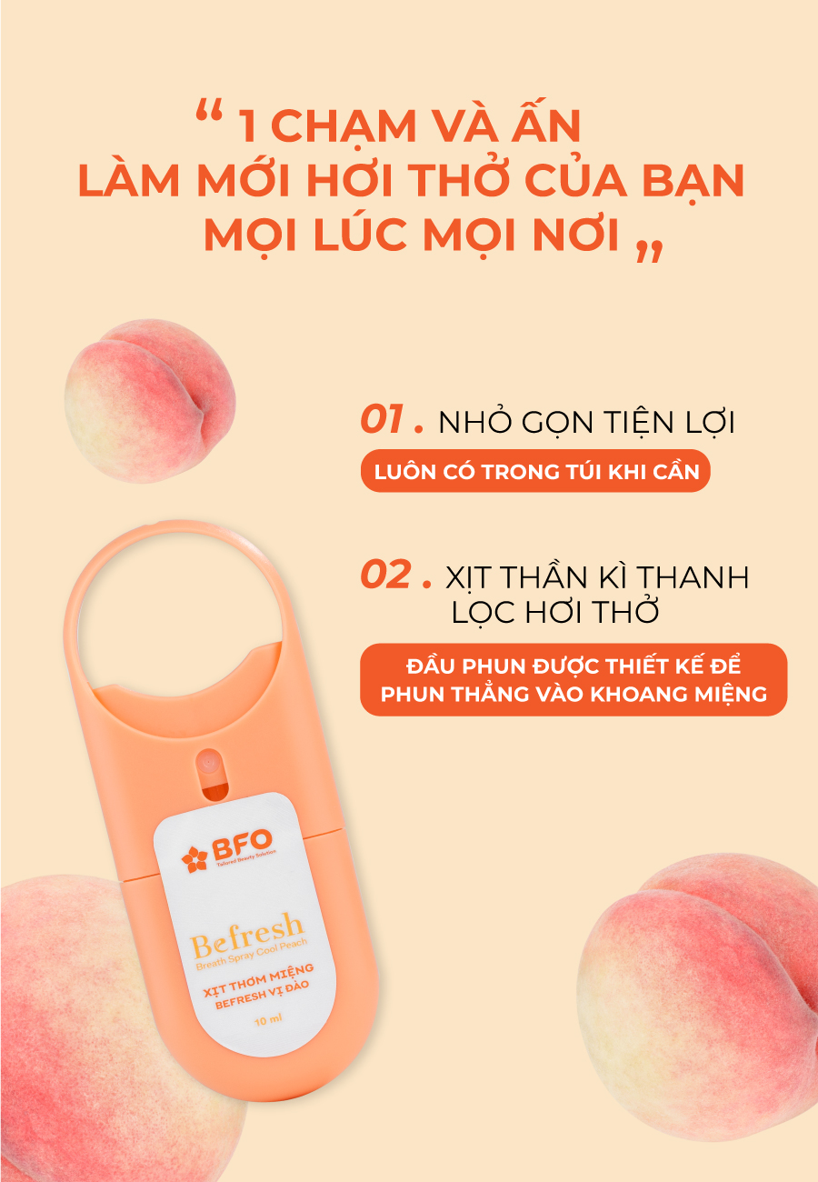 Combo 4 Xịt Thơm Miệng Befresh Cho Hơi Thở Thơm Mát Chỉ Trong 3 Giây Dung Tích 10ml ƯU ĐIỂM NỔI BẬT Khử mùi hôi trong khoang miệng nhanh chóng chỉ trong 3 giây, giúp