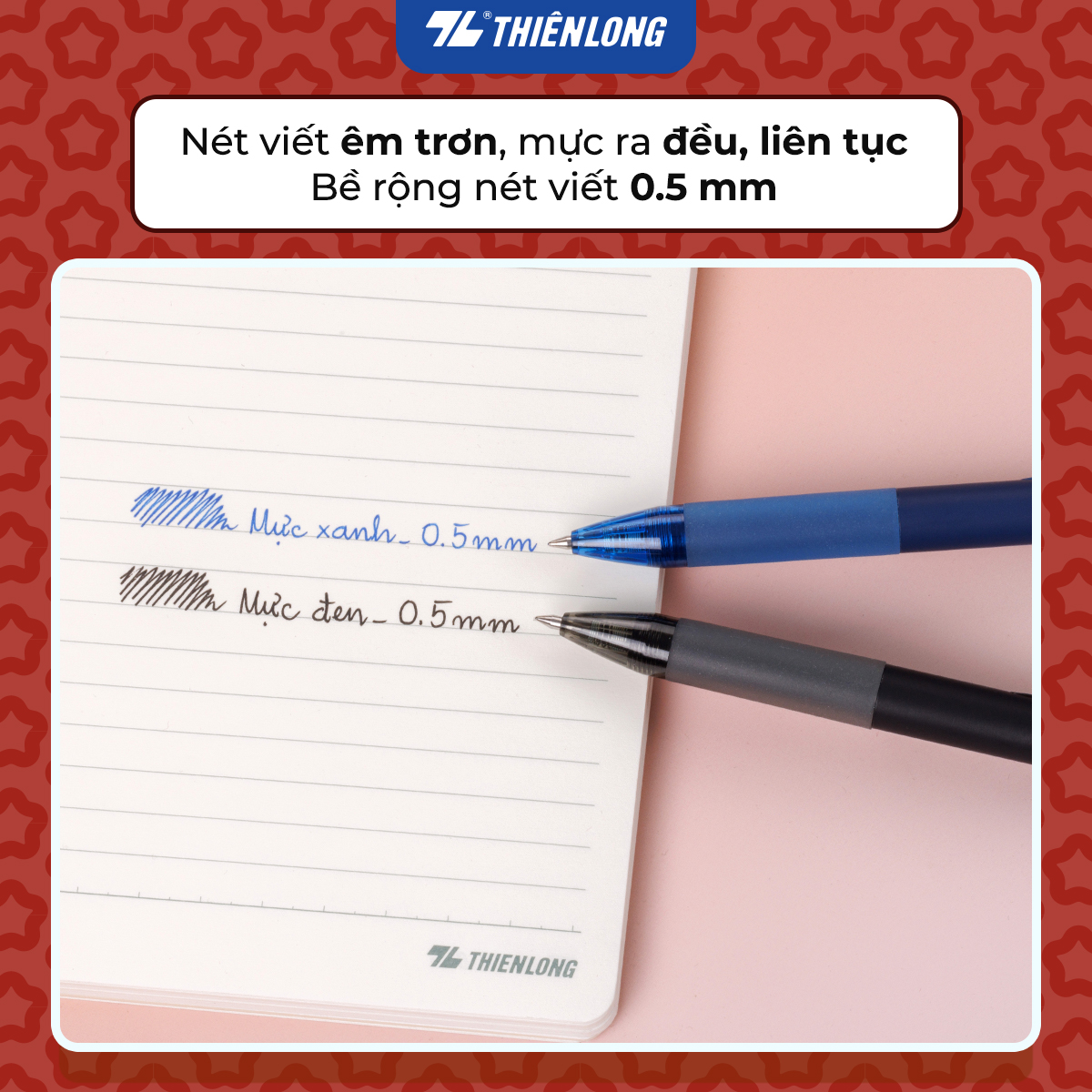 Thông số kĩ thuậtThương hiệuThiên LongĐường kính viên bi0.5 mmTiêu chuẩnTCCS 020:2011/TL-GELXuất xứViệt NamSản xuấtViệt NamKhuyến cáoTránh nguồn nhiệt, hóa chất. Không thích hợp cho trẻ dưới 3 tuổi
