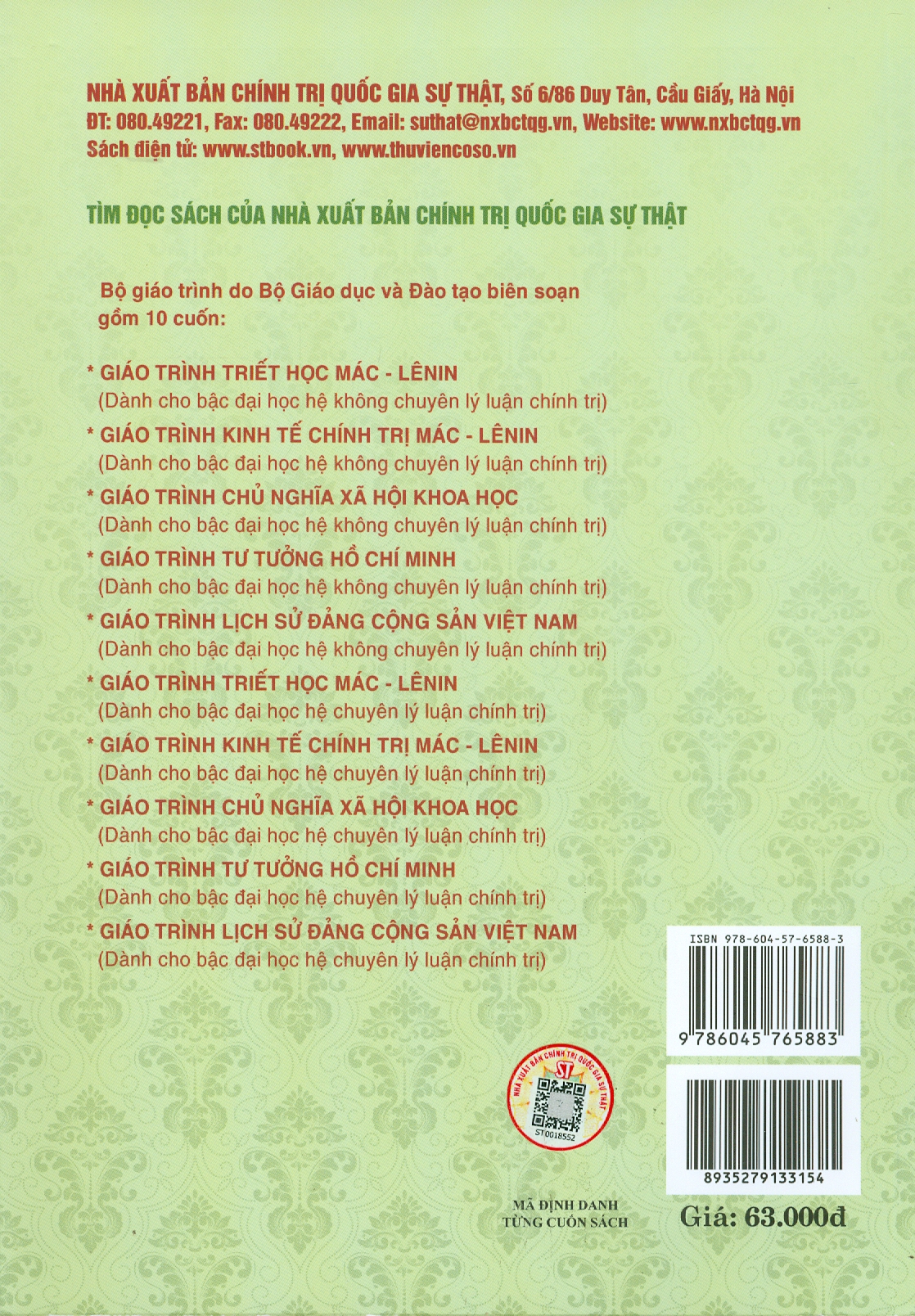 Sách có nguồn gốc xuất xứ, rõ ràng, hợp pháp về bản quyền, có mã QRcode (mã định danh từng cuốn sách) và tem chống giả, là bản gốc, mới 100% chưa qua sử dụng của Nhà xuất bản Chính trị Quốc gia và Bộ GD&ĐT theo đúng quy định của pháp luật hiện hành.