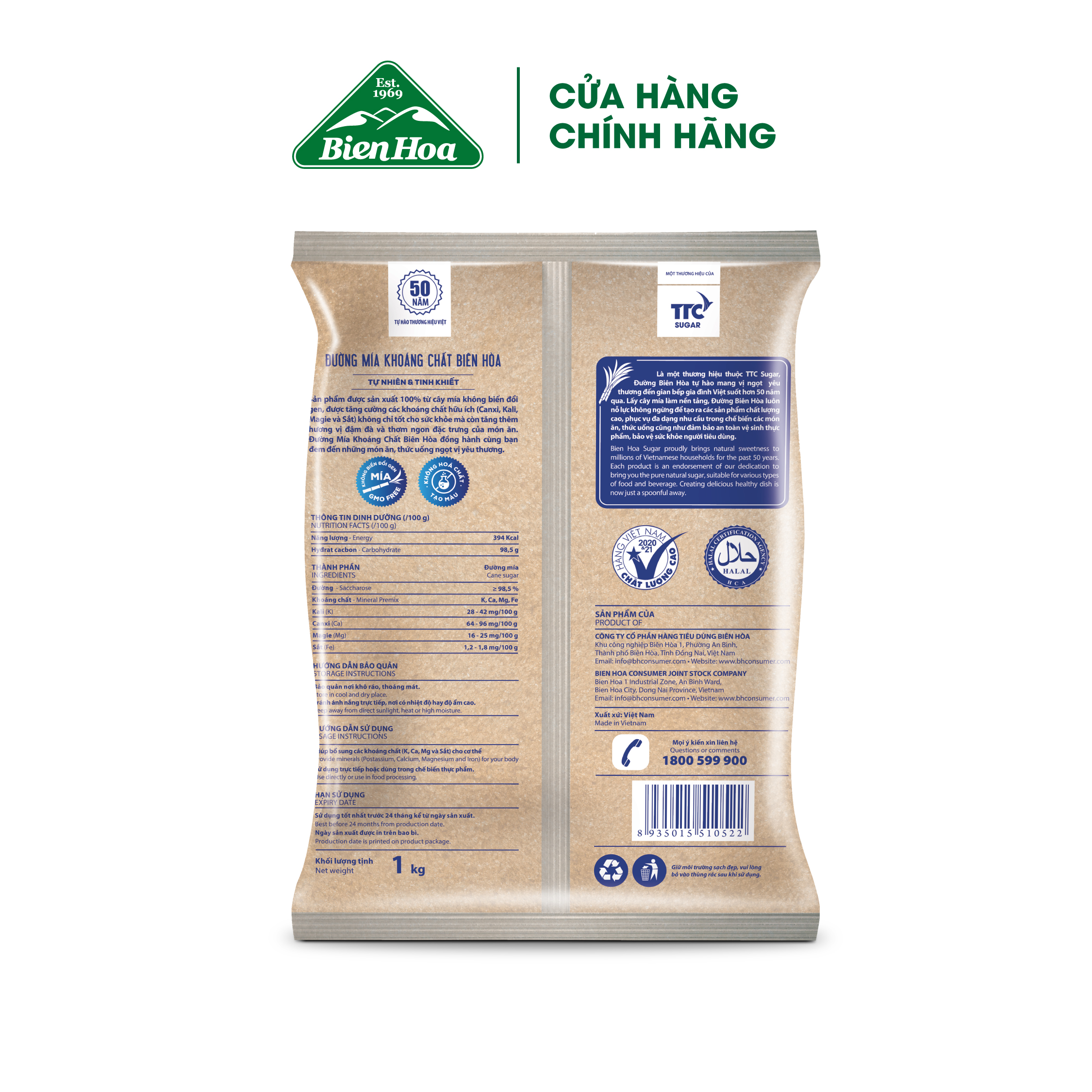 Mua tại TiktokSản phẩm được sản xuất 100% từ cây mía không biến đổi gen, được tăng cường các khoáng chất hữu ích (Canxi, Kali, Magie và Sắt) không chỉ tốt cho sức khỏe mà còn tăng thêm hương vị đậm đà và thơm ngon đặc trưng của món ăn. Đường Mía Khoáng Chất Biên Hòa đồng hành cùng bạn đem đến những món ăn, thức uống ngọt vị yêu thương.