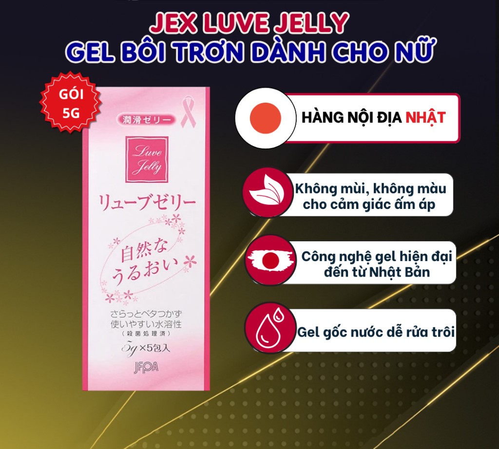 Giới thiệu gel bôi trơn tình dục cho nam nữ không mùi Jex Luve Jelly 55g Nhật Bản Gel bôi trơn âm đạo Jex Luve Jelly là sản phẩm của thương hiệu nổi tiếng JEX đến