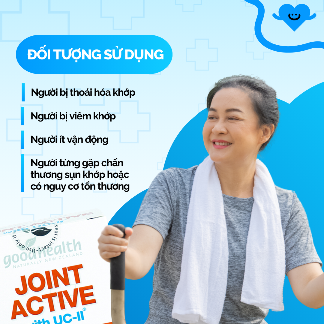 Goodhealth Joint Active với UC-II là sản phẩm sử dụng được cho những người bị thoái hóa sụn khớp xương, những người mắc các bệnh sụn khớp cấp tính mãn tính, viêm khớp dạng thấp, thoái hóa khớp, thấp khớp.