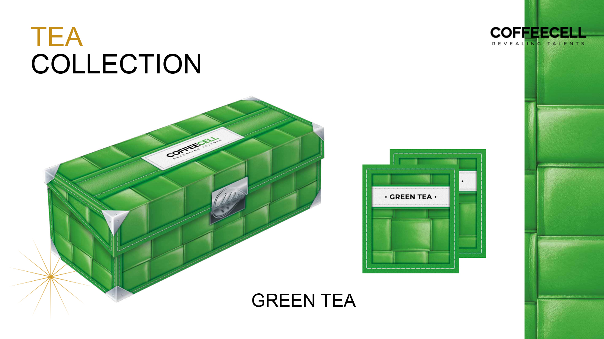 TRÀ XANH VỚI NHÂN SÂM HOÀNG ĐẾ - COFFEECELL Trà nguyên lá ngọt thanh và chát nhẹ, Chống oxy hóa, Tăng cường tập trung Hương thơm thảo mộc tươi với màu mật ong óng vàng và dư vị thoang thoảng mùi hoa giúp bạn tìm thấy sự cân bằng và những khám phá mới về tài năng của bạn. ● Trà nguyên lá với vị ngọt thanh và chát nhẹ ● Công dụng chống oxy hóa từ các chất catechin ● Sức mạnh tự nhiên của nhân sâm Hoàng đế ● Trạng thái cân bằng hoàn hảo giữa năng lượng và sự yên tĩnh Dường như loại trà này được