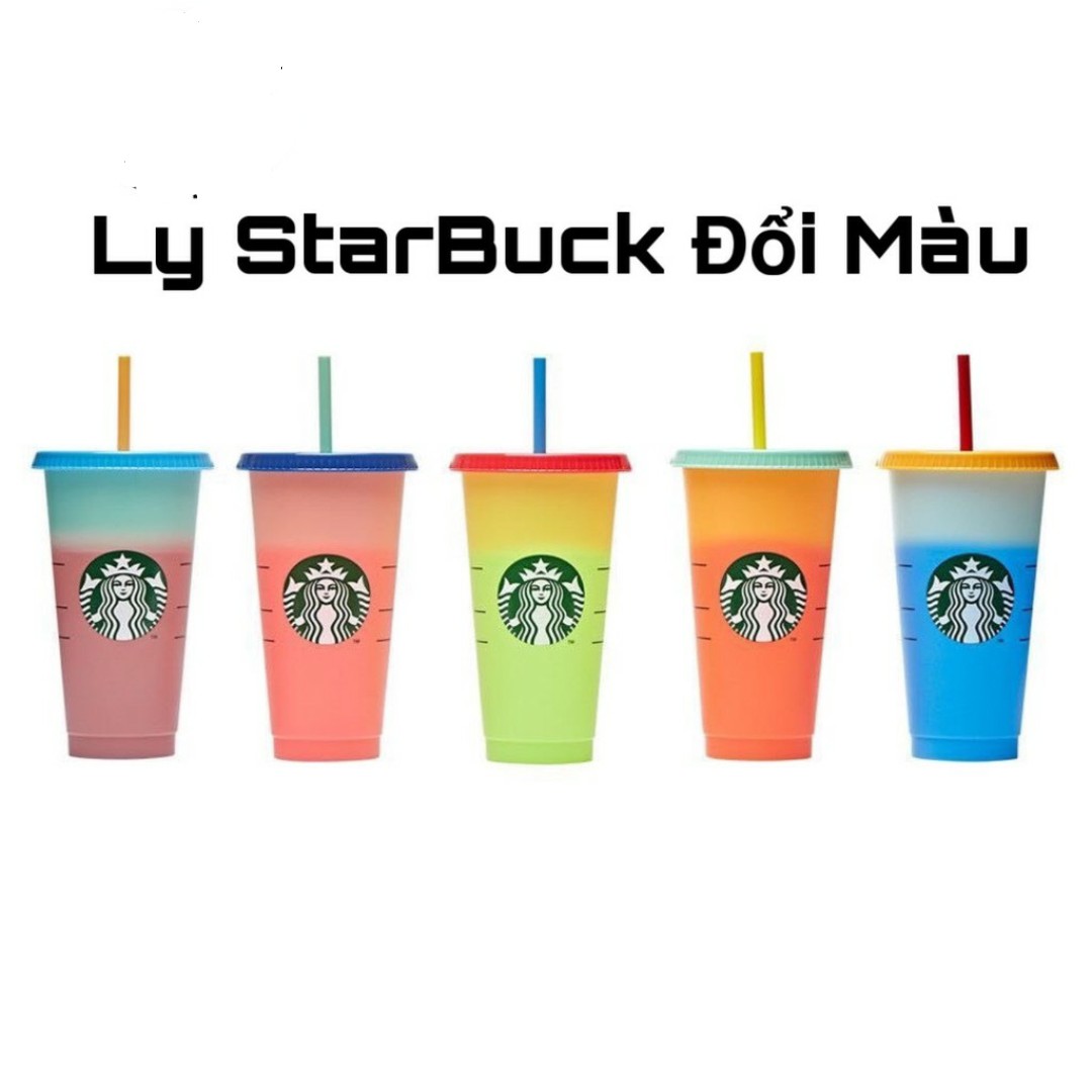 Combo 5 Ly Cốc Uống Nước Starbuck Đổi Màu Theo Nhiệt Độ Độc ĐÁo Có Thể Tái Sử Dụng - Tặng Kèm Nắp Và Ông Hút - Hàng Loại 1- Chính Hãng MINIIN