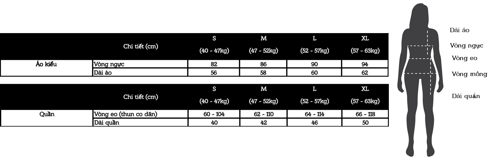 Size L : < 55 kg Size XL < 63 kg Vải Satin Lụa hút ẩm tốt, mềm mịn, thoáng mát, độ rũ óng, bóng đẹp Cảm giác thoải mái, dễ chịu, nhẹ nhàng khi