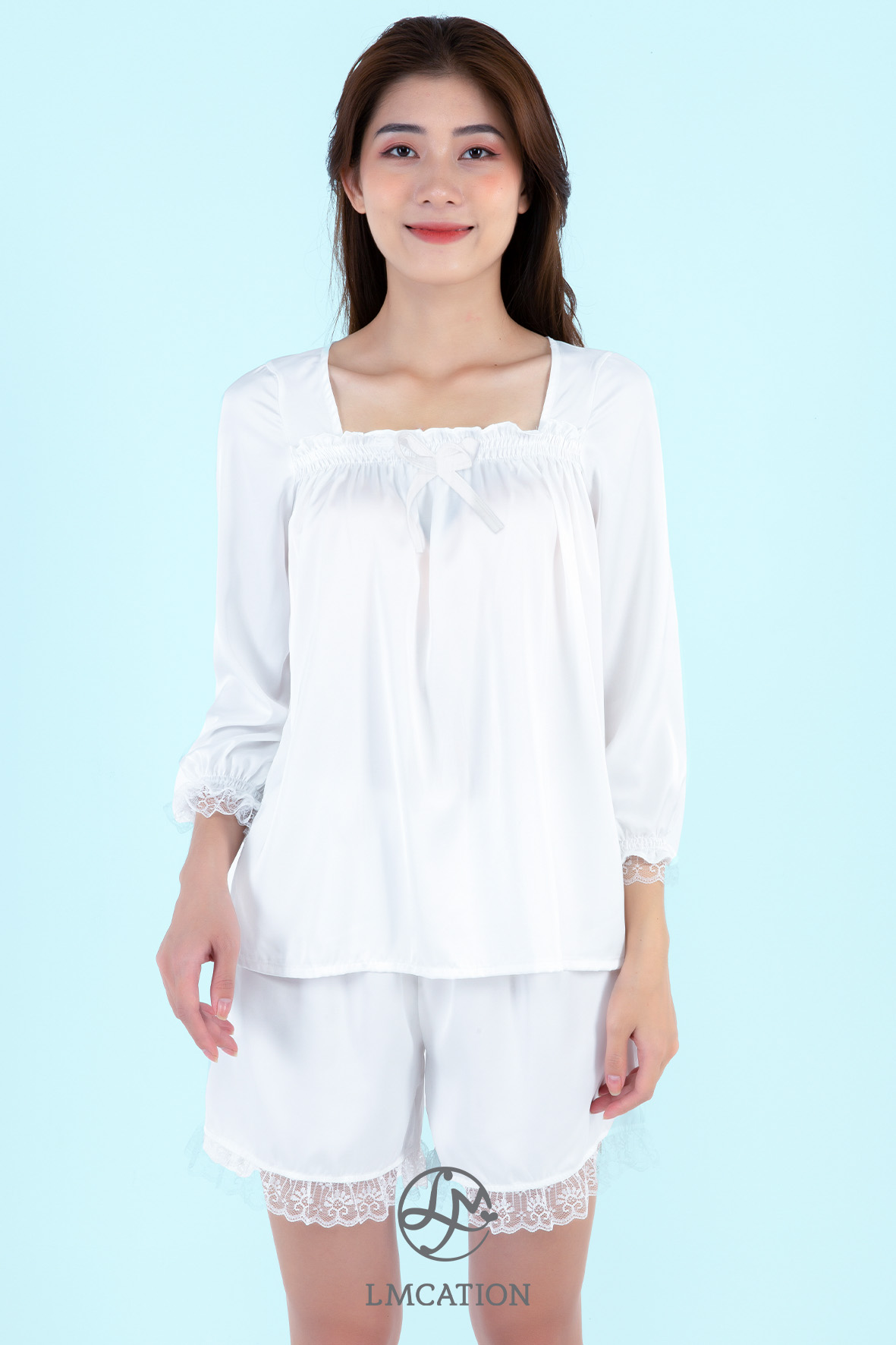 ✨Combo Áo tay lửng phối ren & Quần đùi phối ren LMcation Queen - Màu Trắng