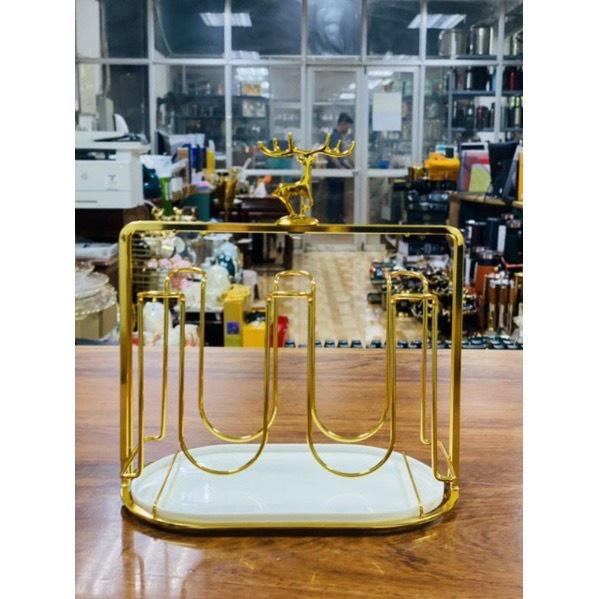 Giá úp ly, kệ úp cốc, chất liệu hợp kim mạ vàng sang trọng, Kèm khay hứng nước