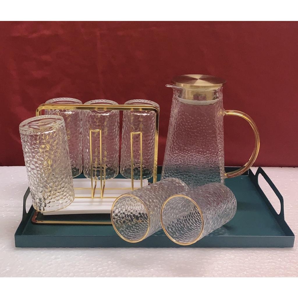 Bộ bình 6 cốc thủy tinh chịu nhiệt mạ vàng cao cấp