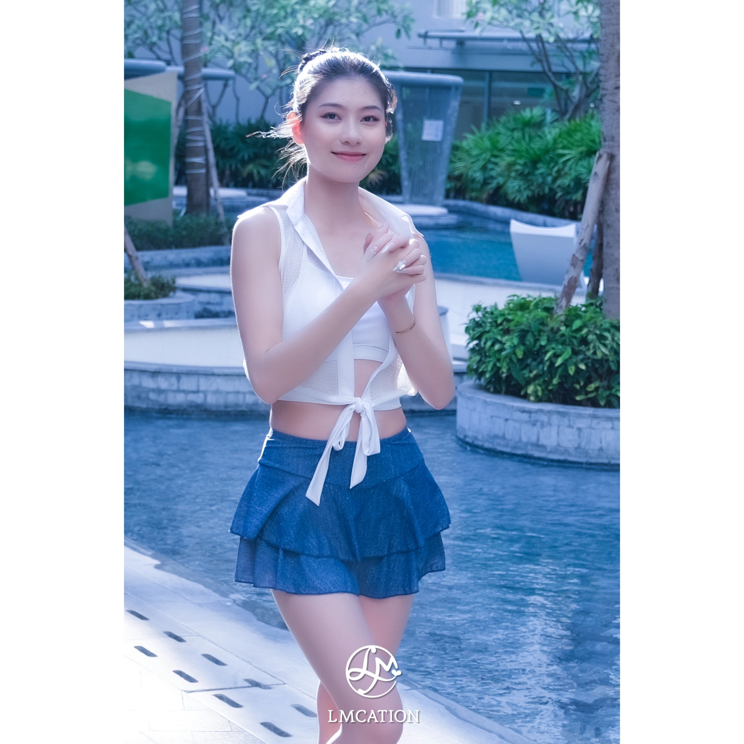 Áo lưới đa năng LMcation Bella được thiết kế sát nách có phối lưới, là sản phẩm đa năng mà bạn có thể mặc đi tập thể dục, đi biển hoặc khoác bên ngoài đi chơi. Áo có cổ và dây cột phía trước.  Chiếc áo bikini thể thao LMcation Elisa bên trong, được thiết kế cơ bản 2 dây nhẹ nhàng, truyền thống. Với chất liệu co dãn có thấm hút mồ hôi ở lớp trong và vải bơi ở lớp ngoài, bạn có thể thoải mái vận động hay bơi lội mọi lúc mọi nơi.  Quần váy đa năng Gym-to-swim LMcation được thiết kế xếp tầng nữ tính xinh xắn bên ngoài, với chiếc quần đùi bên trong tiện lợi cho việc vận động. Vòng eo co giãn thoải mái.    Bạn cũng có thể tự phối áo với các loại quần hoặc váy có màu sắc, hoa văn và kích thước khác nhau để có được một bộ đồ  vừa vặn và phù hợp với màu da hay vóc dáng của bạn.
