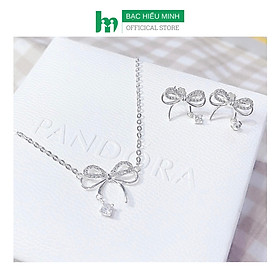 Chất liệu: 30% bạc xi bạch kim Kích thước: Dây chuyền dài 45cm, mặt dây xấp xỉ: 1,45x2,25mm Bông tai xấp xỉ: 1,6x1,4mm Bộ trang sức món hoa nạm đá BHB67 - Chất liệu: 30%