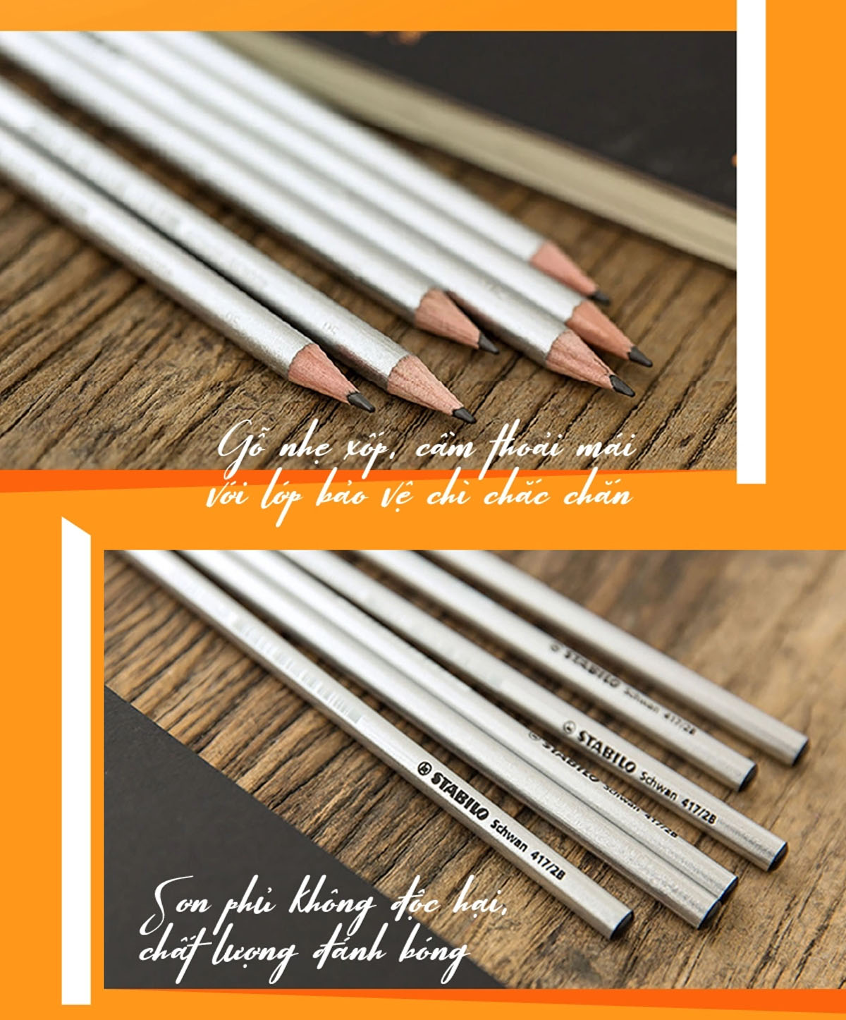 ✨Combo bút chì gỗ STABILO Schwan 417 - Bộ 2 bút chì + Gôm tẩy ER193 + Chuốt chì PS4538 (PC417S-C2S+)
