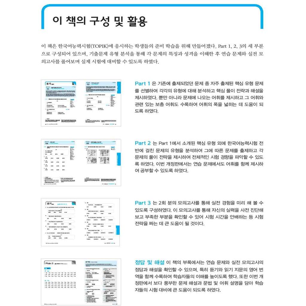 Cẩm nang gồm 2 tập: TOPIK I tương ứng với trình độ Sơ cấp, TOPIK II tương ứng với trình độ Trung – Cao cấp của kỳ thi tiếng Hàn này.