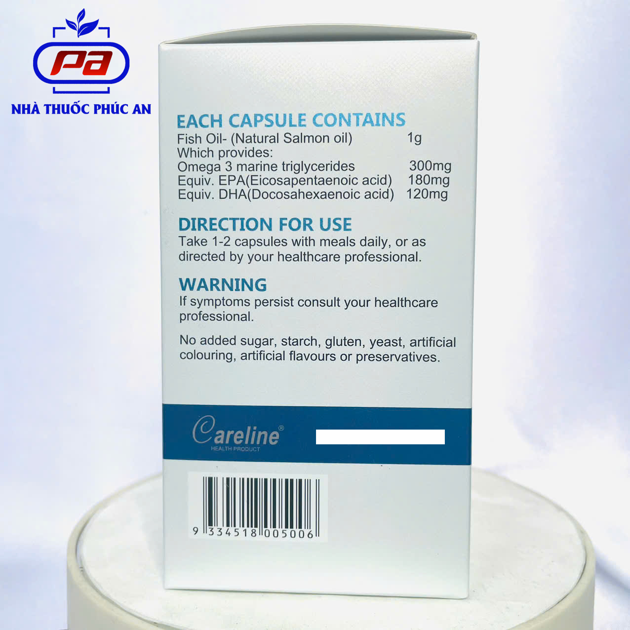 - Trên thị trường hiện nay có rất nhiều loại dầu cá khác nhau. Tuy nhiên, Fish Oil (Salmon Oil) của hãng CareLine lại được chiết xuất từ 100% cá hồi tươi, loài cá nằm sâu dưới lòng đại dương sẽ đạt được độ tinh khiết và an toàn cho người sử dụng.