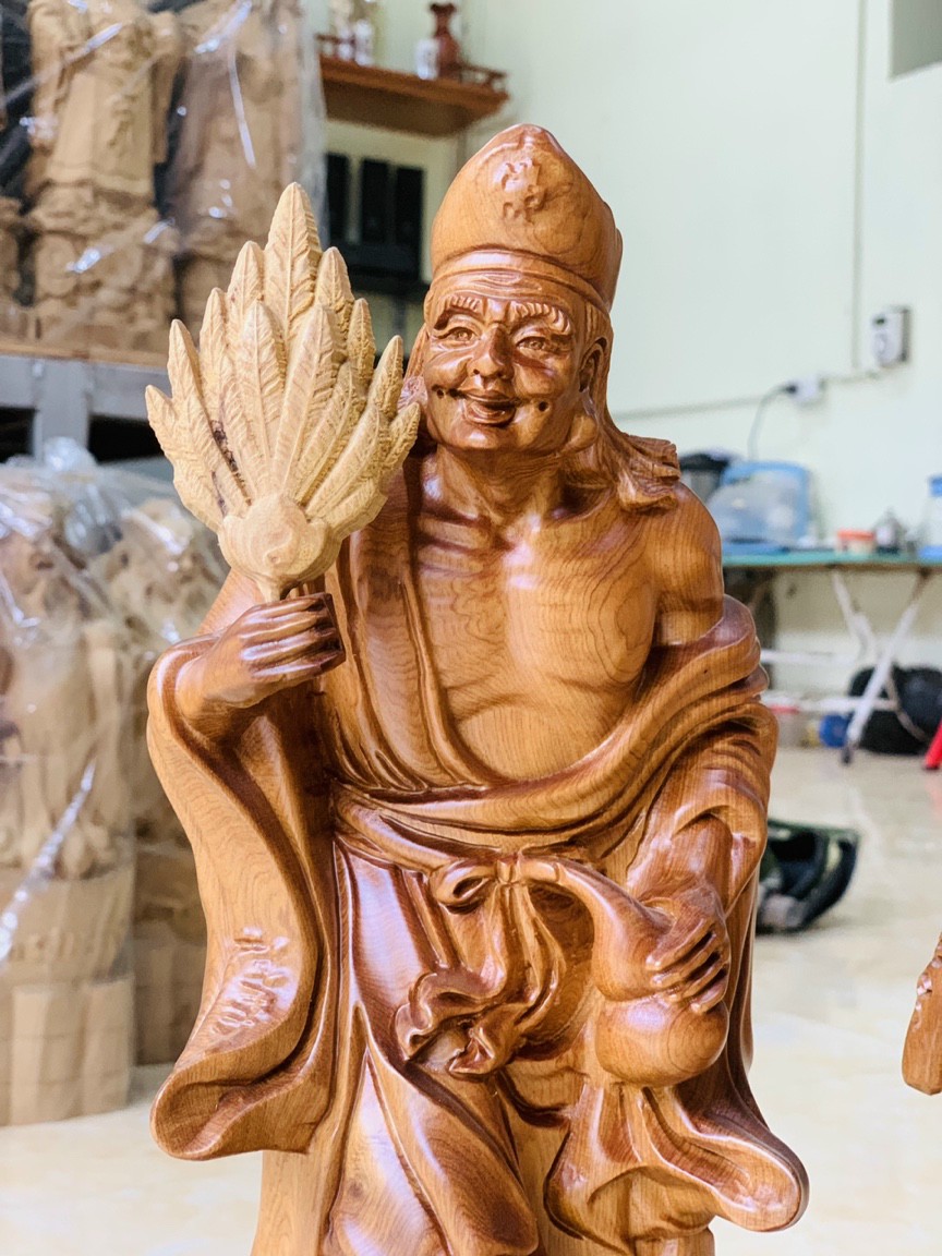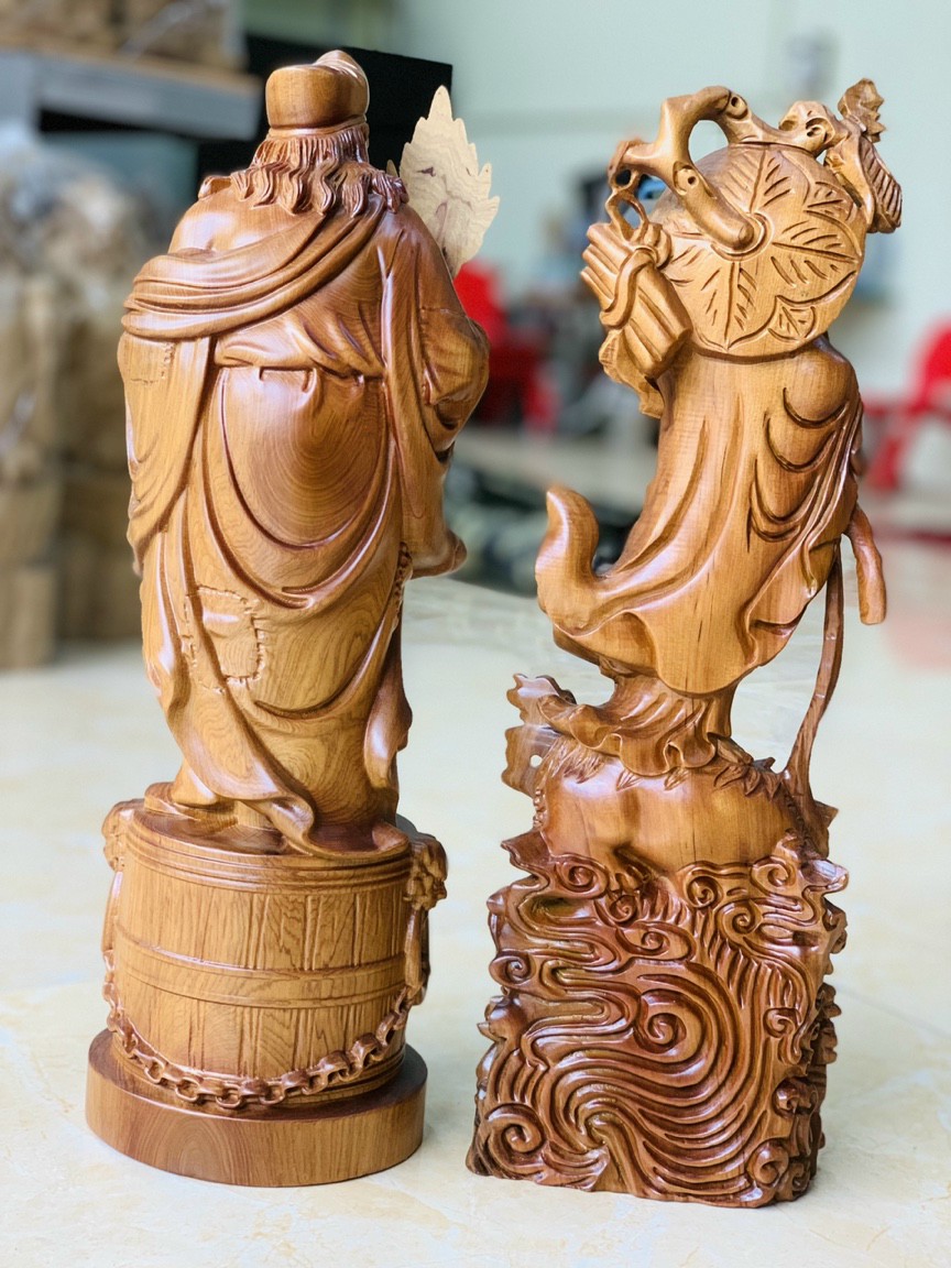 ✨Combo cặp tượng tế công và tượng đạt ma sư tổ bằng gỗ bách xanh thơm nức kt 40×12×11cm