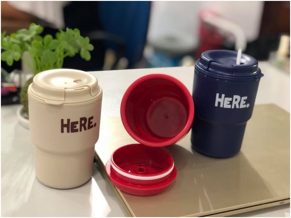 Combo cốc giữ nhiệt có nắp xoay Here 320ml Set 150 chiếc ống hút φ5x180mm