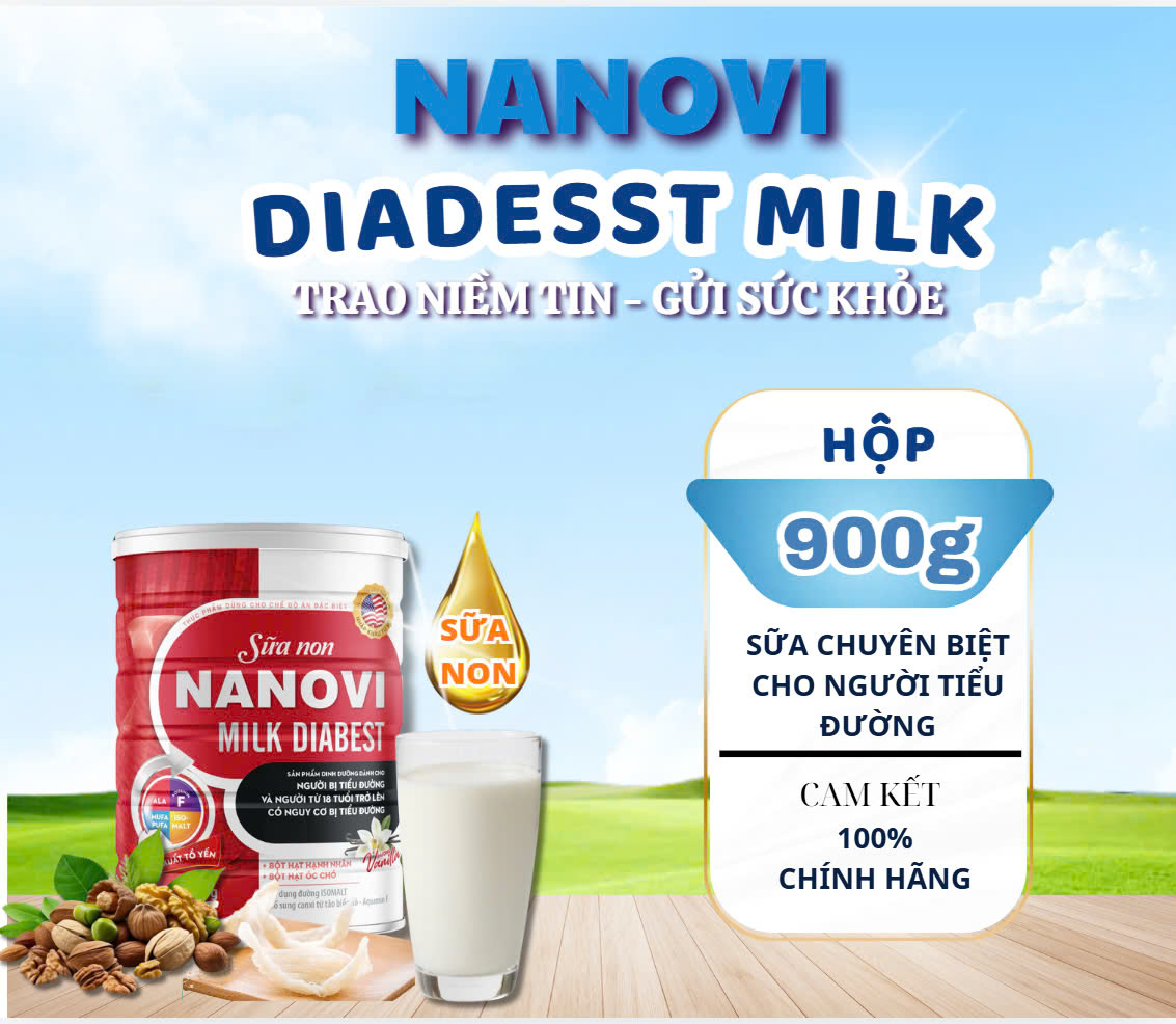 Mua tại TiktokBÍ QUYẾT ỔN ĐỊNH ĐƯỜNG HUYẾT NGAY TẠI NHÀ TỪ NANOVI DIABEST MILK Sữa Nanovi Diabest Milk là dòng sữa chuyên biệt dành cho người tiểu đường. Bổ sung Vitamin và các dưỡng chất thiết yếu giúp ổn định lượng đường trong máu, ngăn ngừa biến chứng tiểu đường, tăng sức đề kháng, ăn ngon - ngủ ngon, giảm tiểu đêm, mất ngủ.